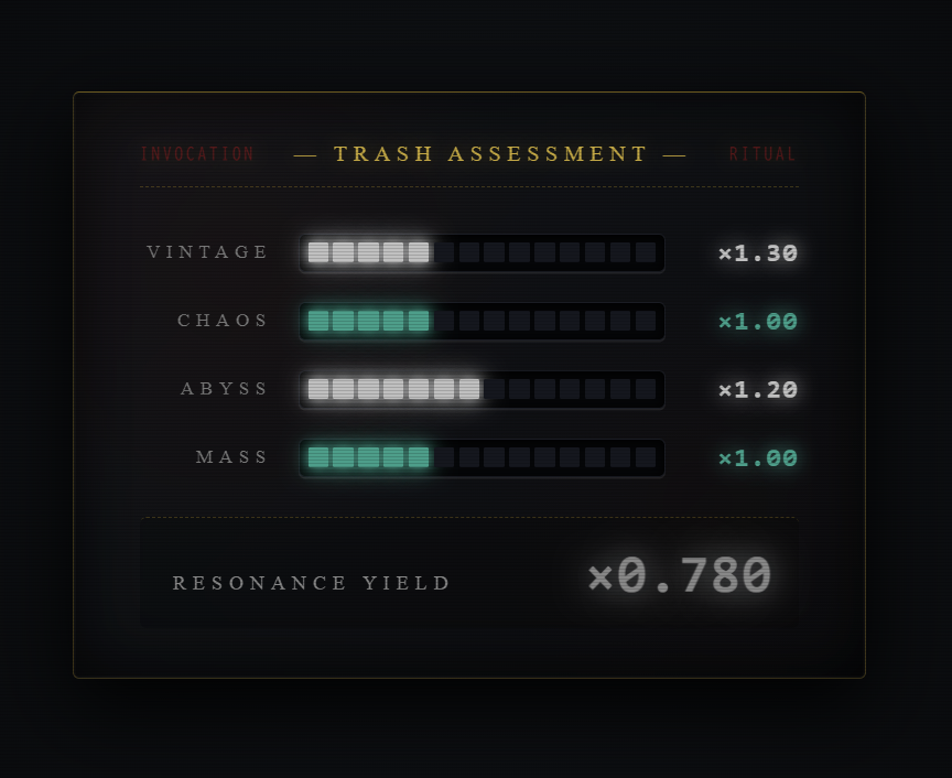 Trash-to-Coinの核心は、ファイルの「業の深さ」を4軸でスコアリングする仕組みです。